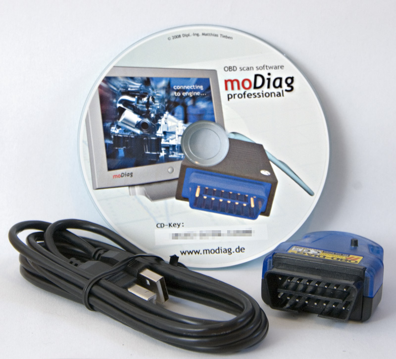 Paket besteht aus OBD-Interface OBD-DIAG 4000 (USB) und Vollversion moDiag expert auf CD